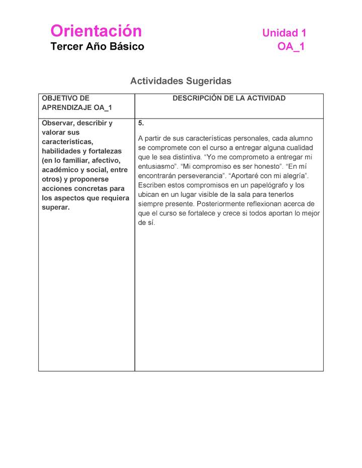 Observar, describir y valorar sus características, habilidades y fortalezas (en lo familiar, afectivo, académico y social, entre otros) y proponerse acciones concretas para los aspectos que requiera superar.