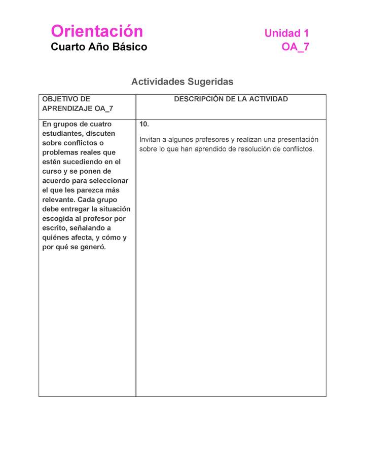 Resolver conflictos entre pares en forma guiada, y aplicar estrategias diversas de resolución de problemas, tales como escuchar, describir los sentimientos del otro y buscar un acuerdo que satisfaga a ambas partes.