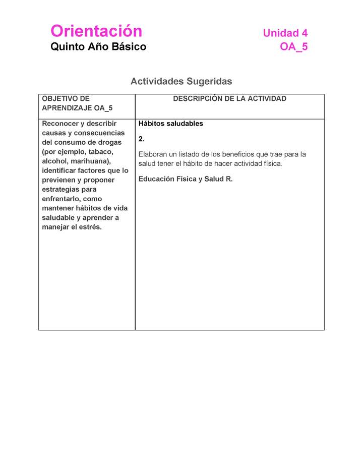 Reconocer y describir causas y consecuencias del consumo de drogas (por ejemplo, tabaco, alcohol, marihuana), identificar factores que lo previenen y proponer estrategias para enfrentarlo, como mantener hábitos de vida saludable y aprender a manejar el stress.