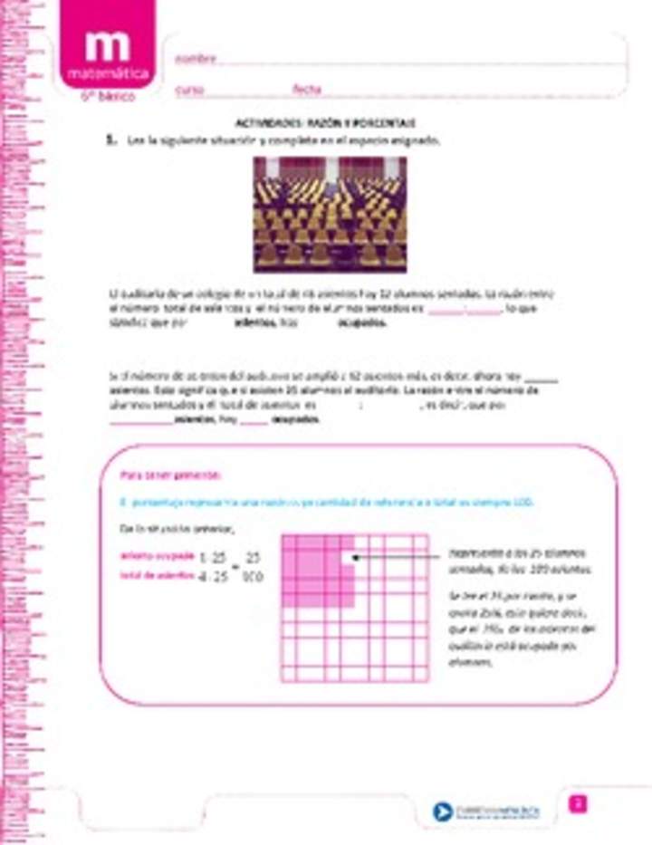 Guía de ejercicios que involucra escribir la razón y el porcentaje asociado a un problema
