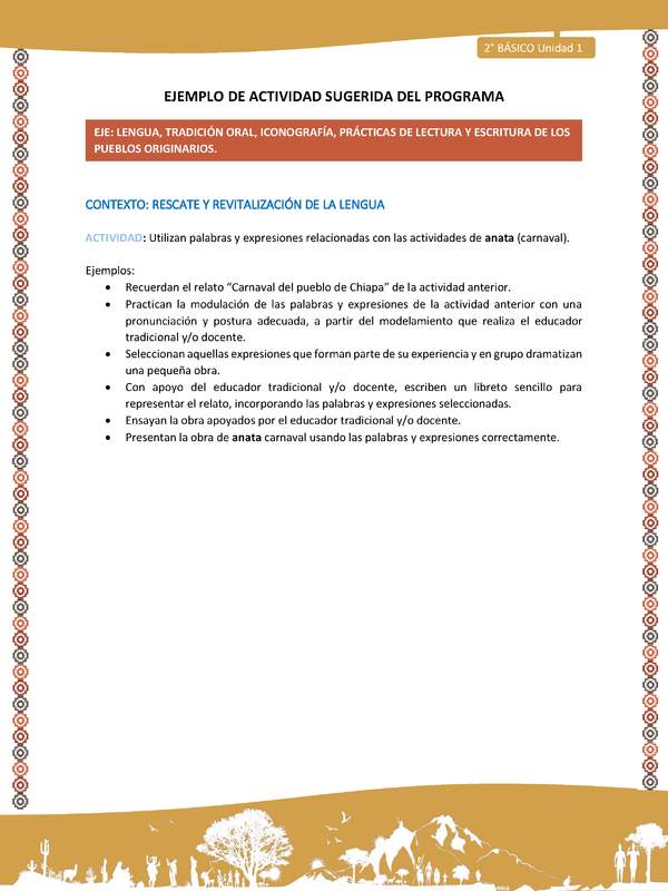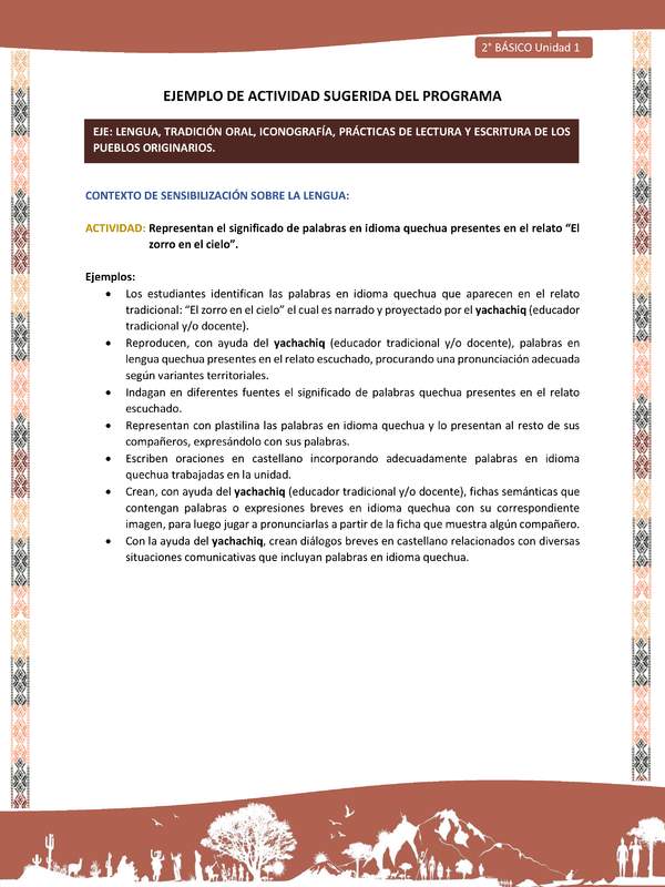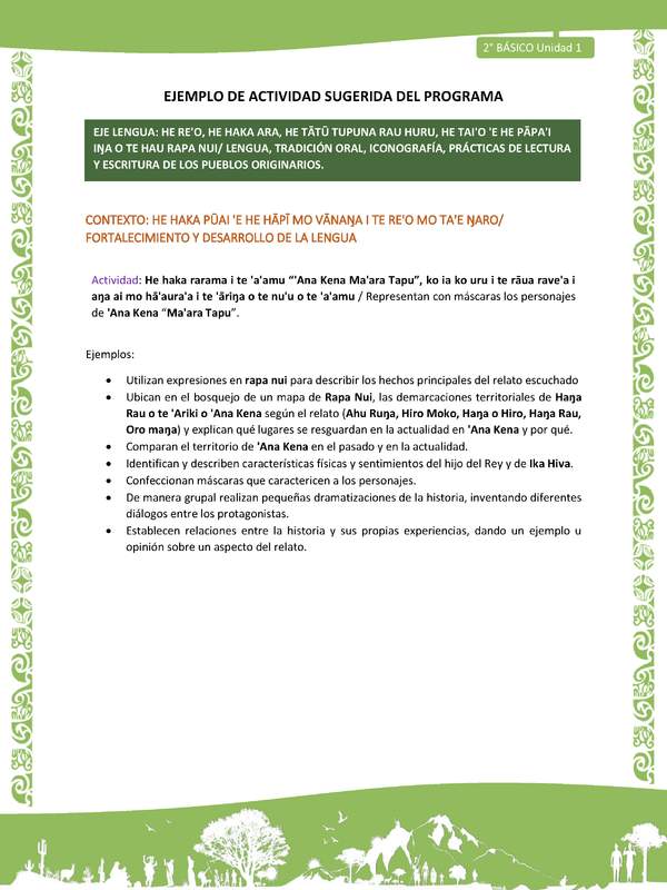 Disfrutar y comprender relatos orales breves, propios de la tradición de los pueblos, reconociendo palabras y/o expresiones en lengua indígena o en castellano, culturalmente significativas, valorando la importancia que tienen estos para los pueblos a los que pertenecen.