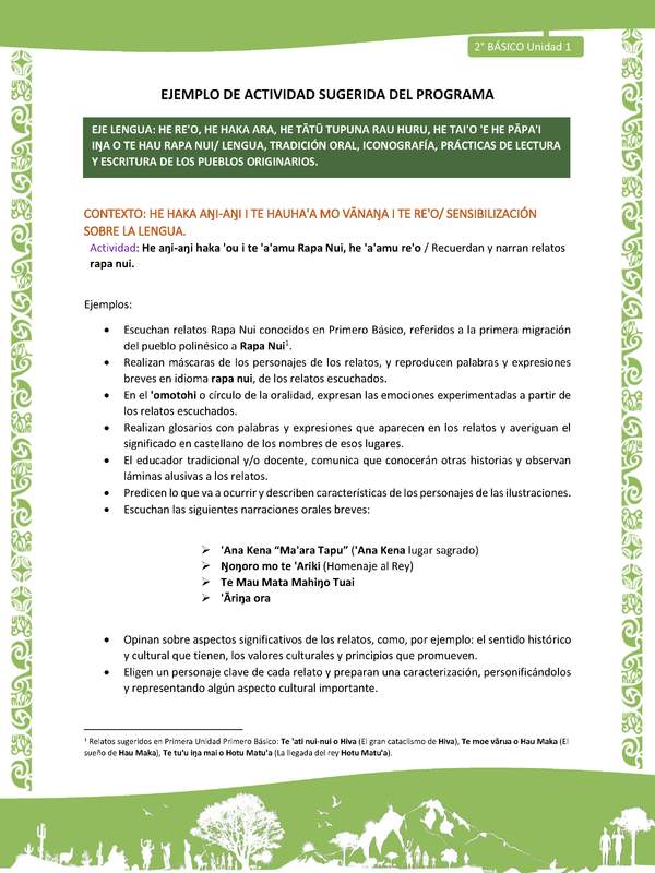 Disfrutar y comprender relatos orales breves, en lengua indígena, propios de la tradición de los pueblos, valorando la importancia que tienen estos para los pueblos a los que pertenecen.