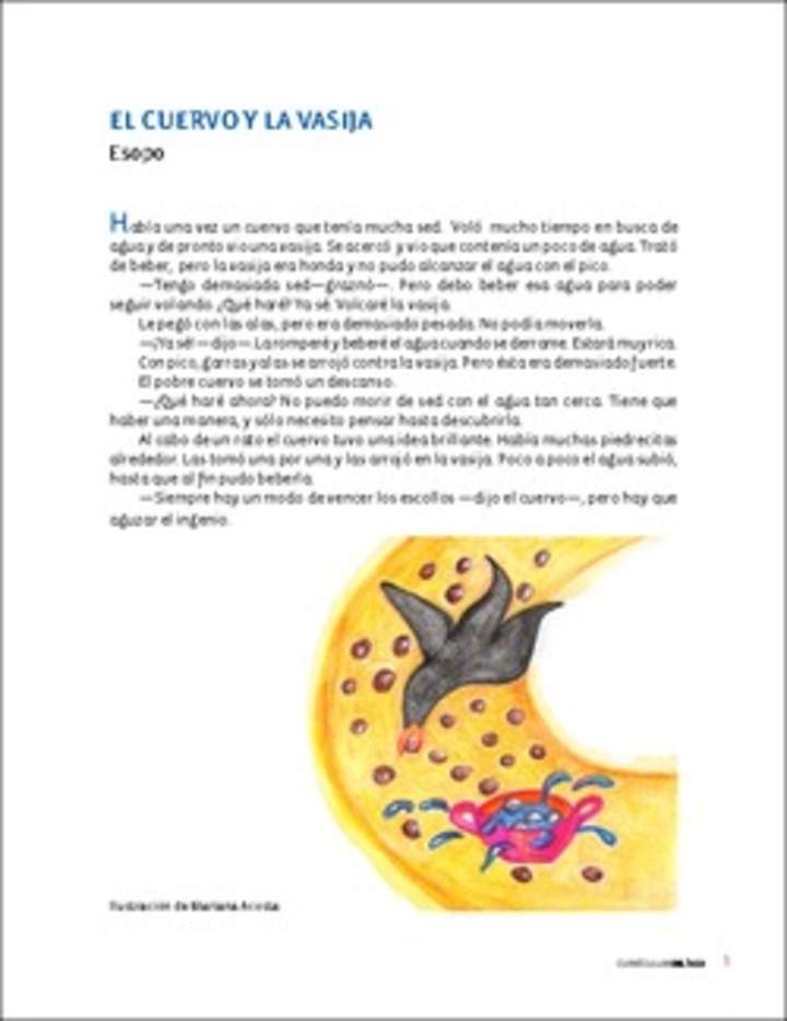 Fábula que trata de un cuervo que demuestra su perseverancia y astucia para saciar sus necesidades.