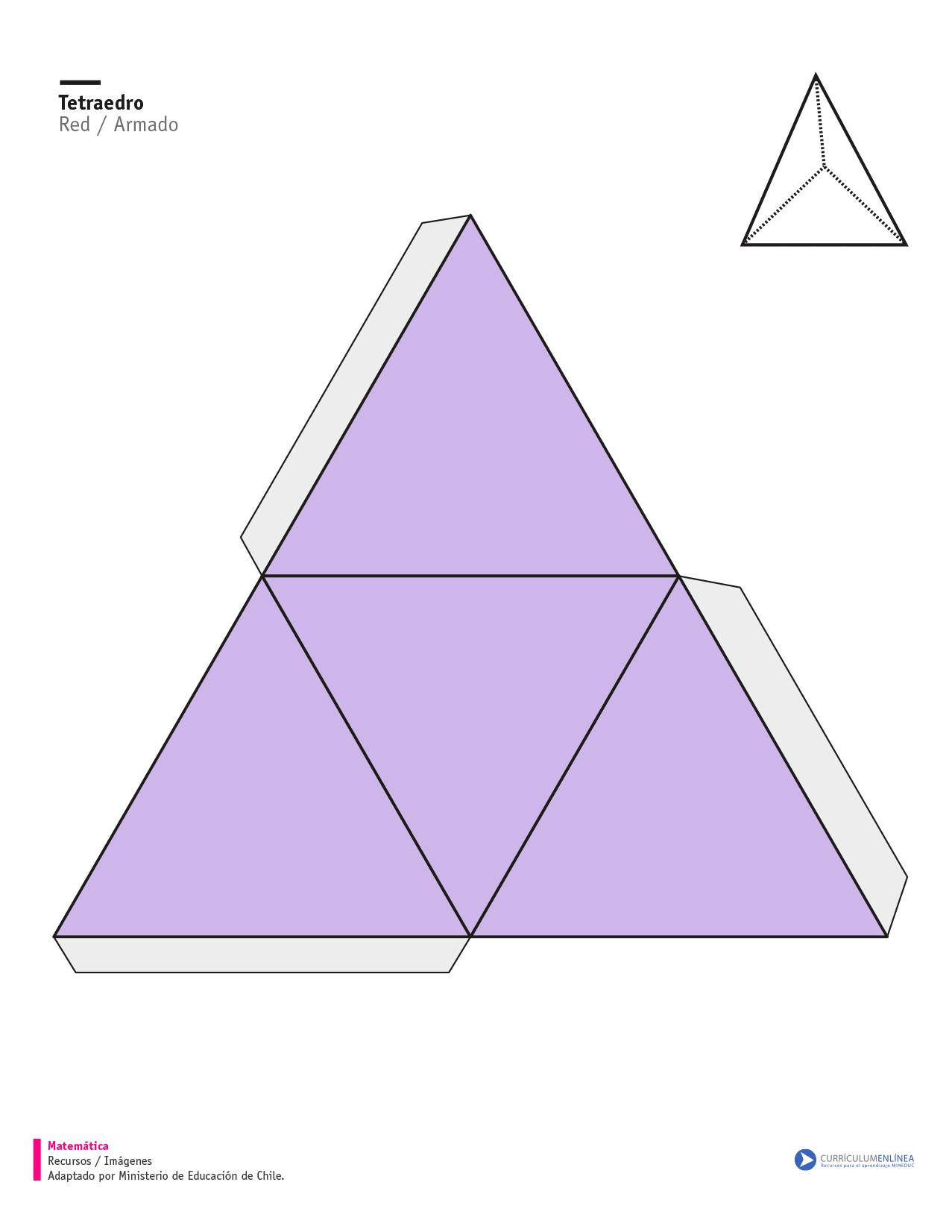 Imagen de la red de un tetraedro para recortar y armar.