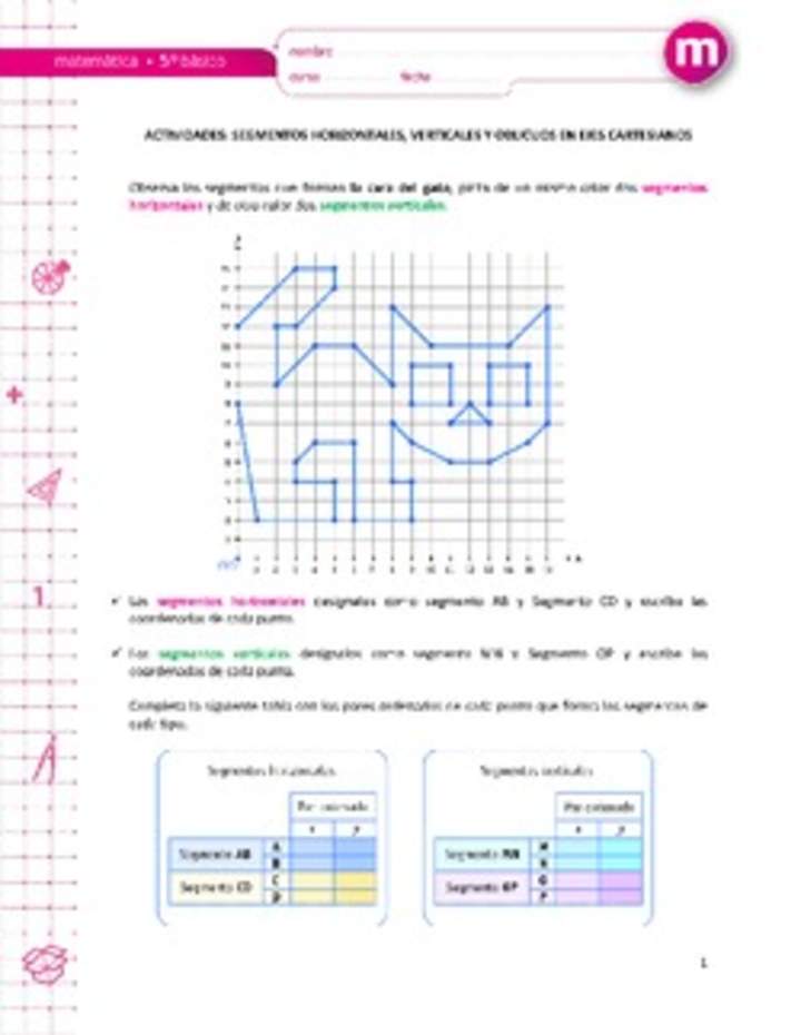 Actividades para identificar segmentos horizontales, verticales y ubicar puntos en el plano cartesiano