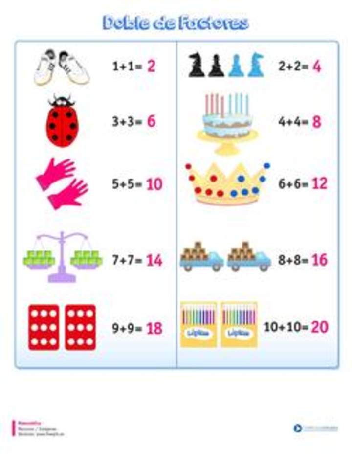 Palabras claves: Dobles - de números hasta el 10 - adición