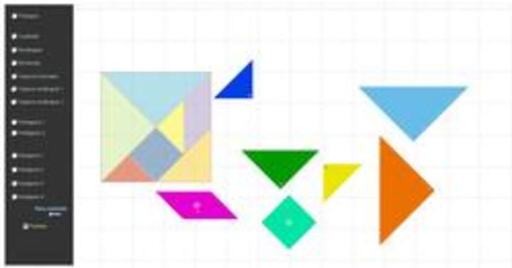 Interactivo que muestra el Tangrama. Permite armar un cuadrado o diferentes figuras geométricas a partir de una base de figuras geométricas.