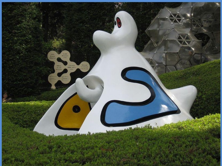 Observan esculturas pintadas de Alexander Calder y Joan Miró.