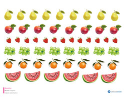 Imagen de diversas frutas para recortar que puede ser utilizada con distintos fines pedagógicos, como por ejemplo para contar, escribir la cantidad de frutas que hay en cada fila, realizar comparaciones, crear patrones y descubrir reglas de formación, etc.