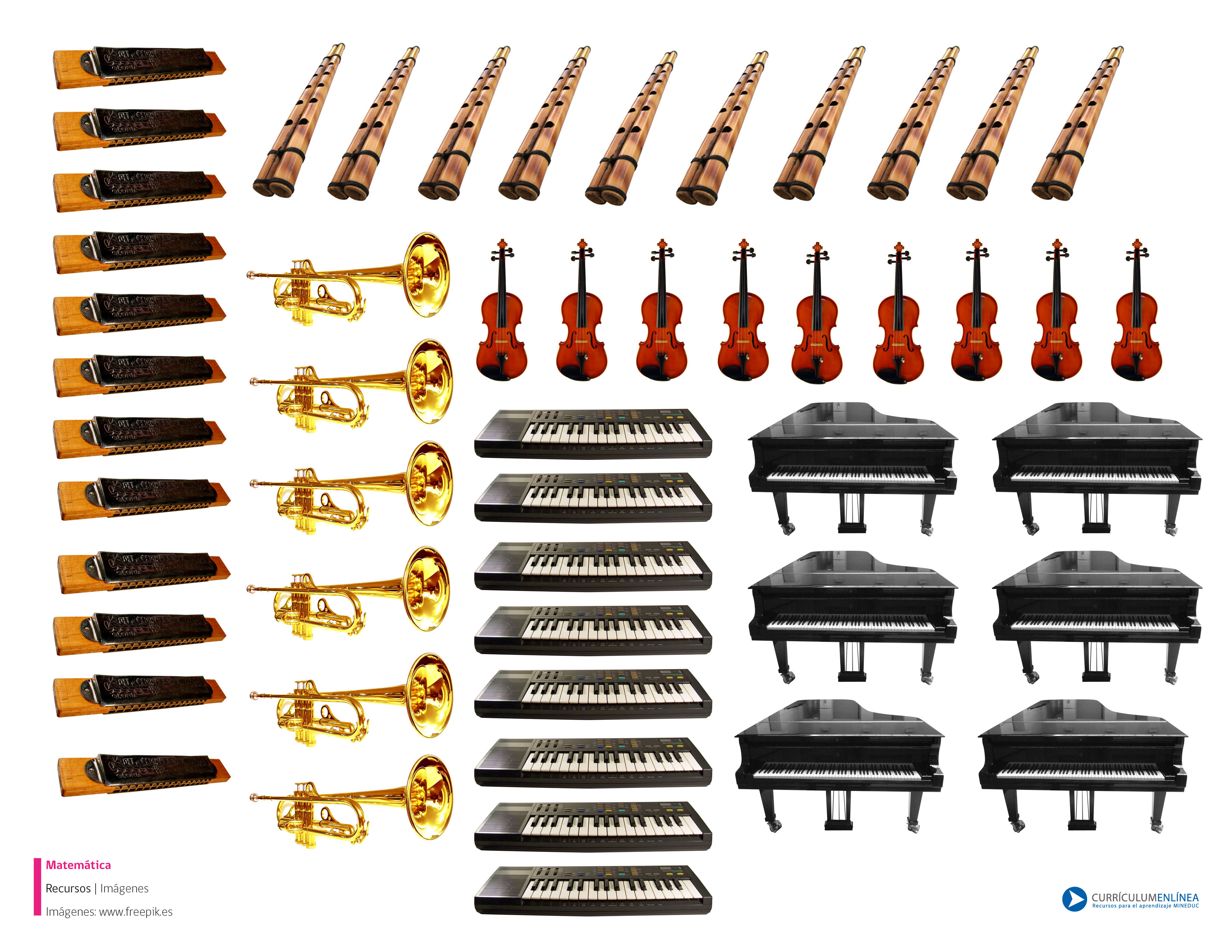 Palabras claves: comparar - crear patrones - Imagen - instrumentos musicales - recortar - contar - escribir - cantidad