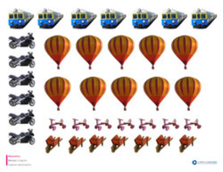 Palabras claves: cantidad - medios de transportes - recortar - contar - escribir - comparar - crear patrones - Imagen
