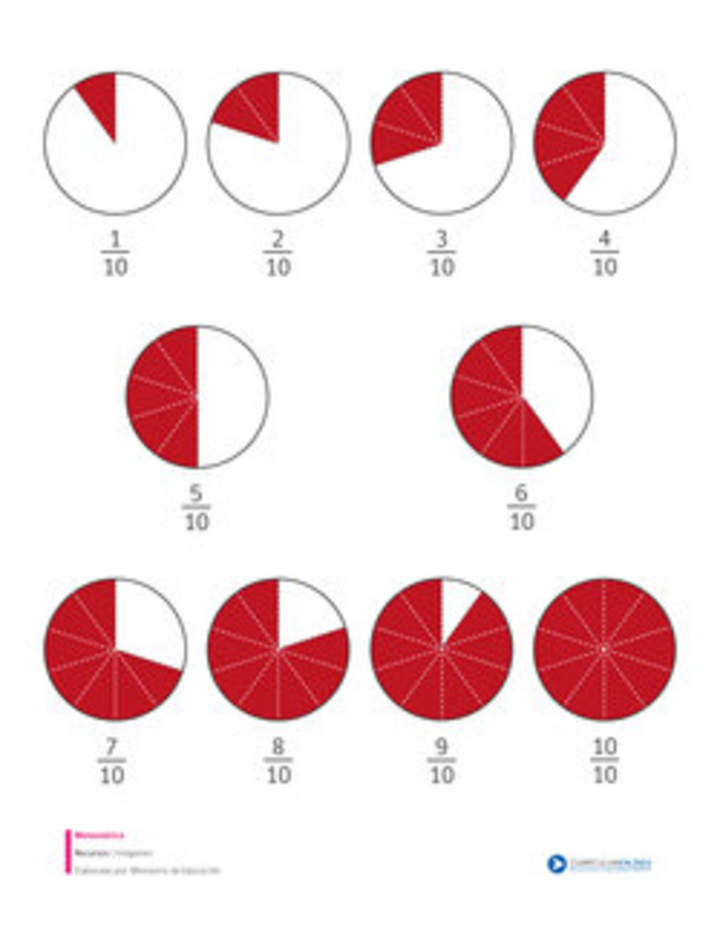 Palabras claves: Imagen - décimos - denominador diez - fracción propia