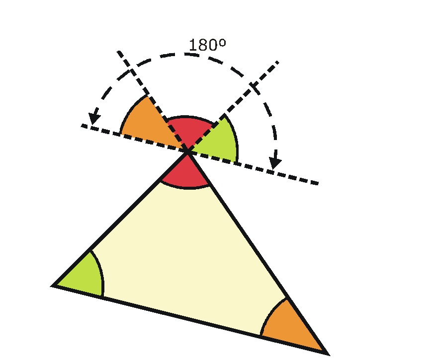 Imagen que permite visualizar por qué la suma de los ángulos interiores de un triángulo es 180°.