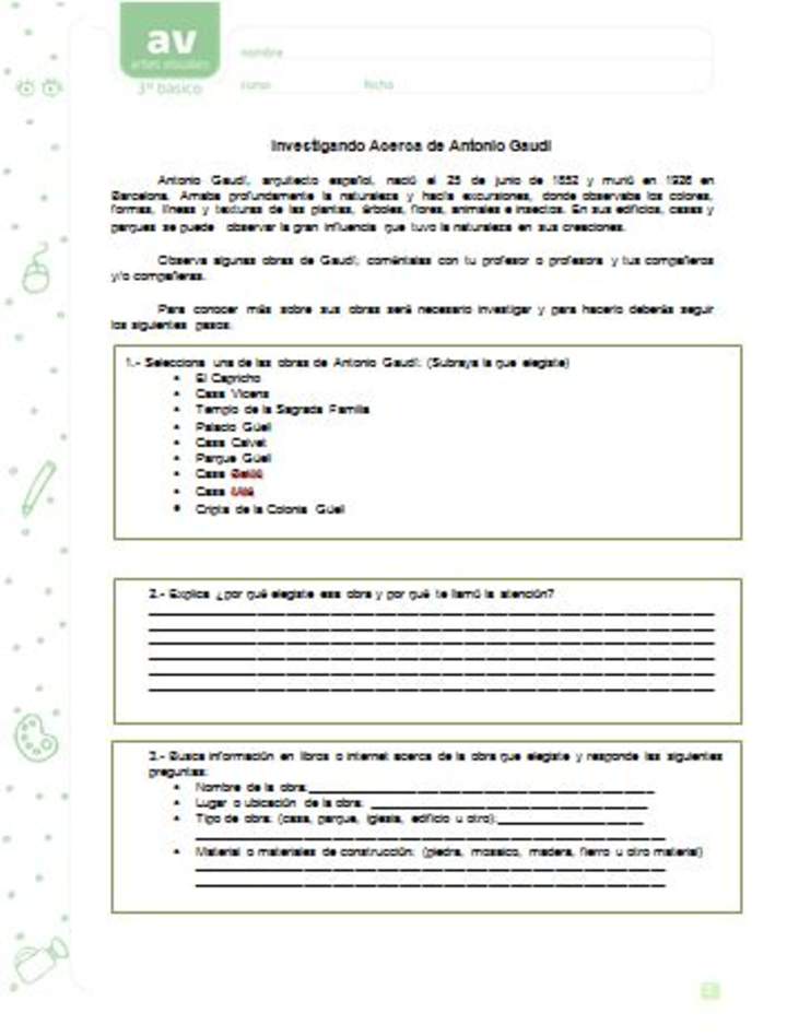 Crear trabajos de arte con un propósito expresivo personal y basados en la observación del: entorno natural: animales, plantas y fenómenos naturales; entorno cultural: creencias de distintas culturas (mitos, seres imaginarios, dioses, fiestas, tradiciones, otros);entorno artístico: arte de la Antigüedad y movimientos artísticos como fauvismo, expresionismo y art nouveau.