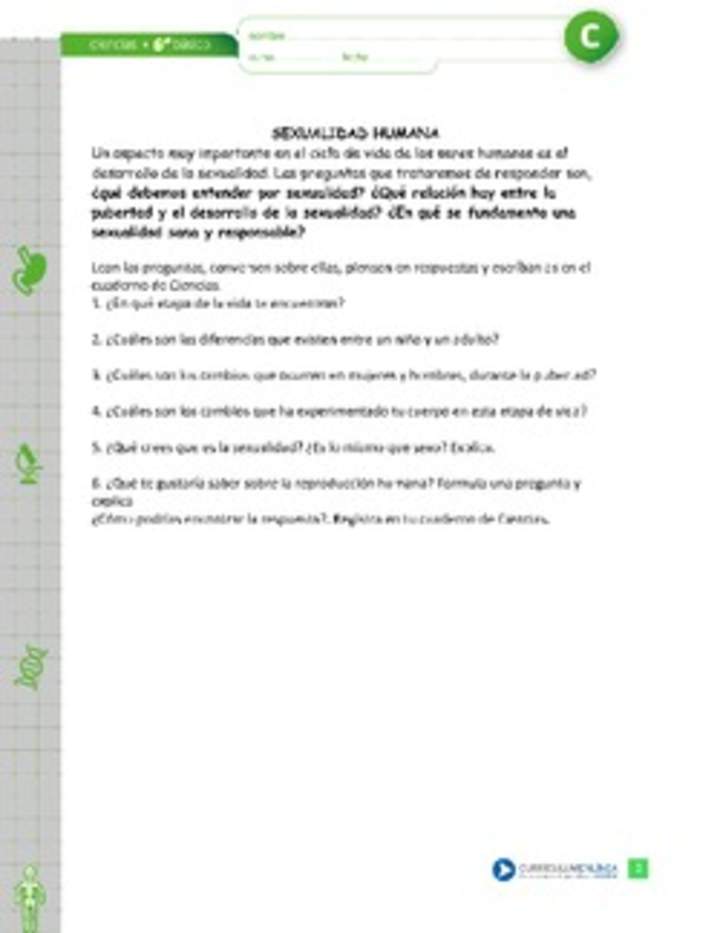 Actividad sobre la sexualidad humana