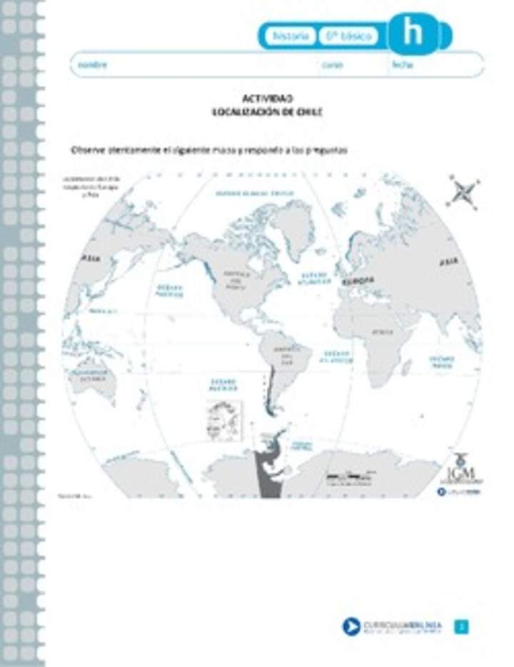 Observación de mapa de la ubicación de Chile en el mundo y responder a preguntas