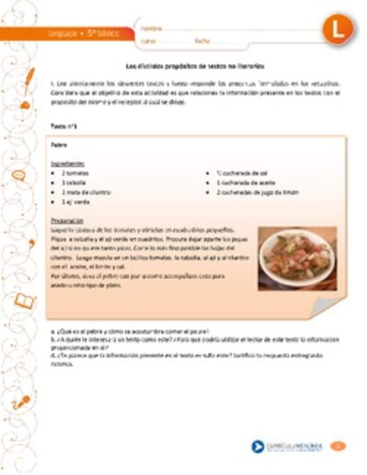 Actividad de comprensión de lectura de textos no literarios, en la que los alumnos identifican el propósito de distintos textos y los posibles lectores a los que se dirigen.