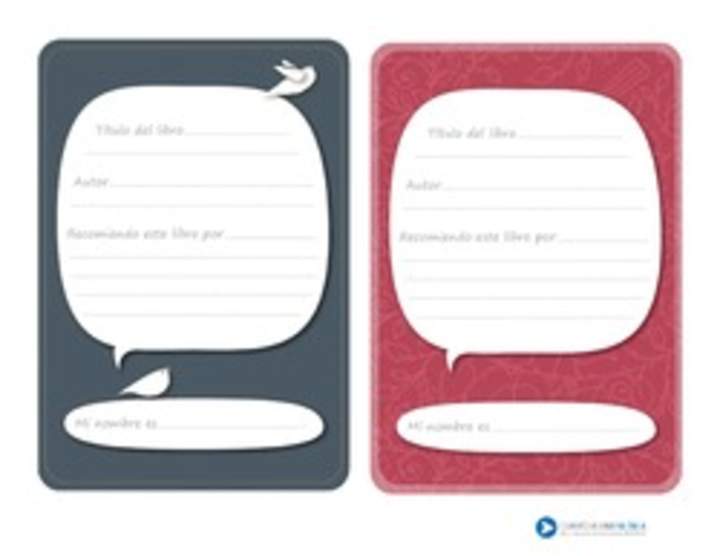 Fichas para que los estudiantes recomienden lecturas y las compartan en un diario mural o en la pared