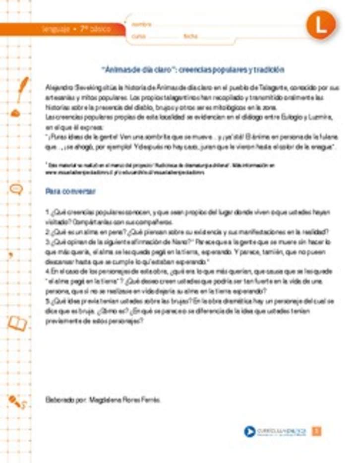 Guía de de orientación para una actividad de diálogo en torno a la obra dramática "Ánimas de día claro".