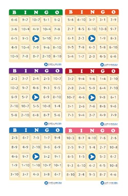 Imágenes de cartones de bingo que pueden utilizarse para ejercitar el cálculo mental de adiciones con números naturales menores a 20 a través del juego.