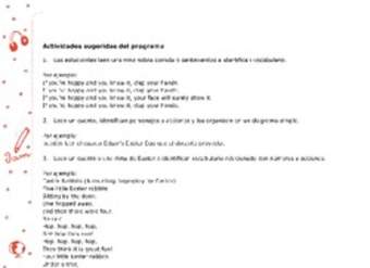 Leer y demostrar comprensión de textos como cuentos, rimas, chants, tarjetas de saludo, instrucciones y textos informativos, identificando: ideas generales del texto; personajes y acciones; vocabulario aprendido, palabras conocidas y expresiones de uso muy frecuente (I want...; Here!).