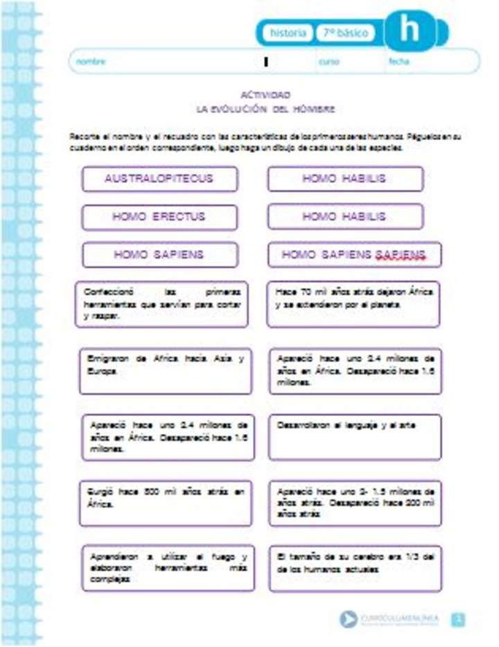 Actividad de unir las características de cada etapa de la evolución del ser humano
