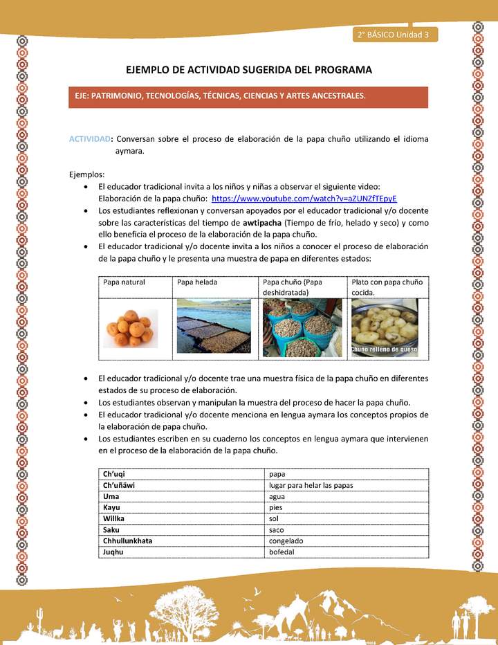 Conversan sobre el proceso de elaboración de la papa chuño utilizando el idioma aymara.