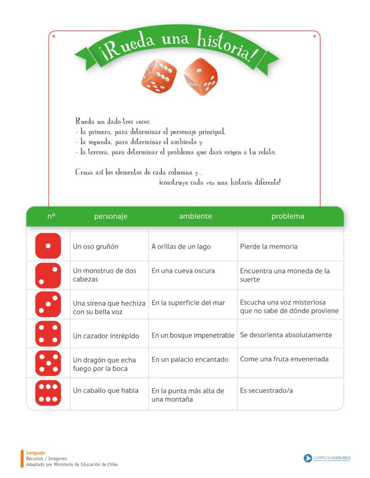 Palabras claves: crear una historia - narración - dados - escritura creativa
