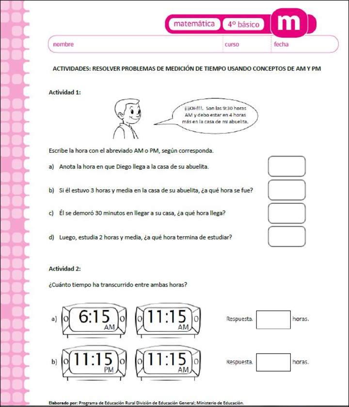 Actividades para leer y registrar horas usando conceptos de AM y PM