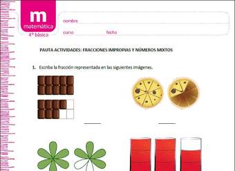Actividades para representar en forma simbólica y pictórica fracciones impropias y números mixtos.