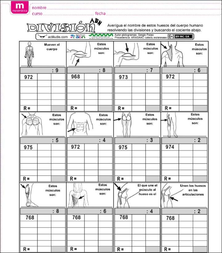 Actividades para dividir números naturales con divisor un dígito.