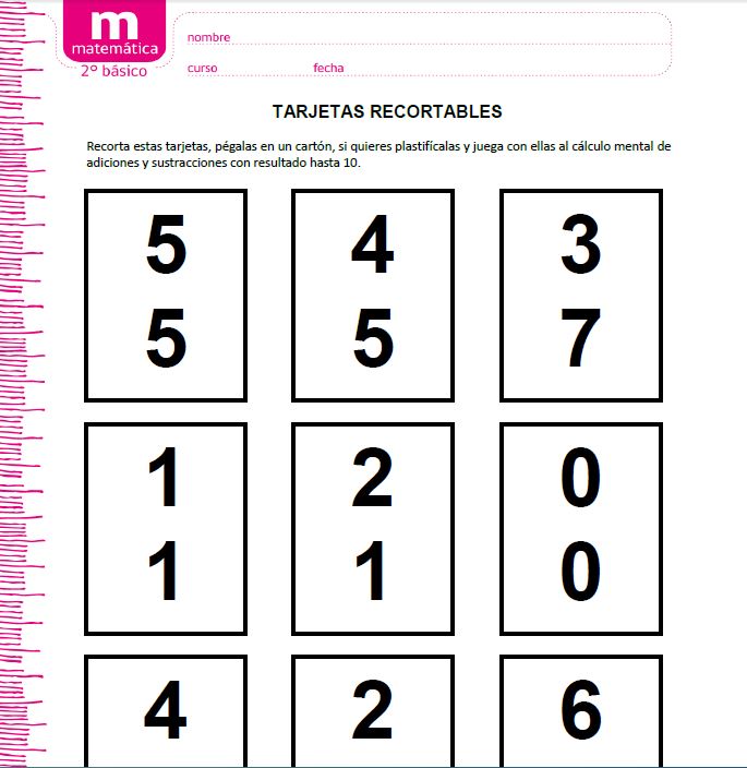 Palabras claves: recortables - tarjetas - adiciones - cálculo mental - sustracciones