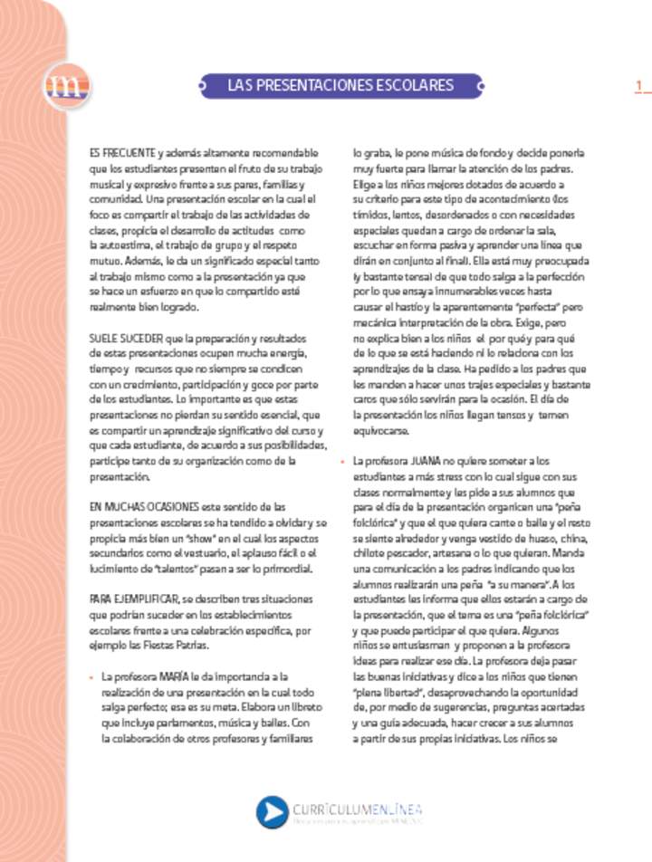 Presentar su trabajo musical, en forma individual y grupal, compartiendo con el curso y la comunidad.