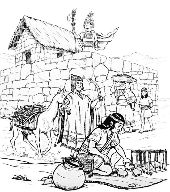 Imagen que representa la vida cotidiana de la civilización inca (blanco y negro)