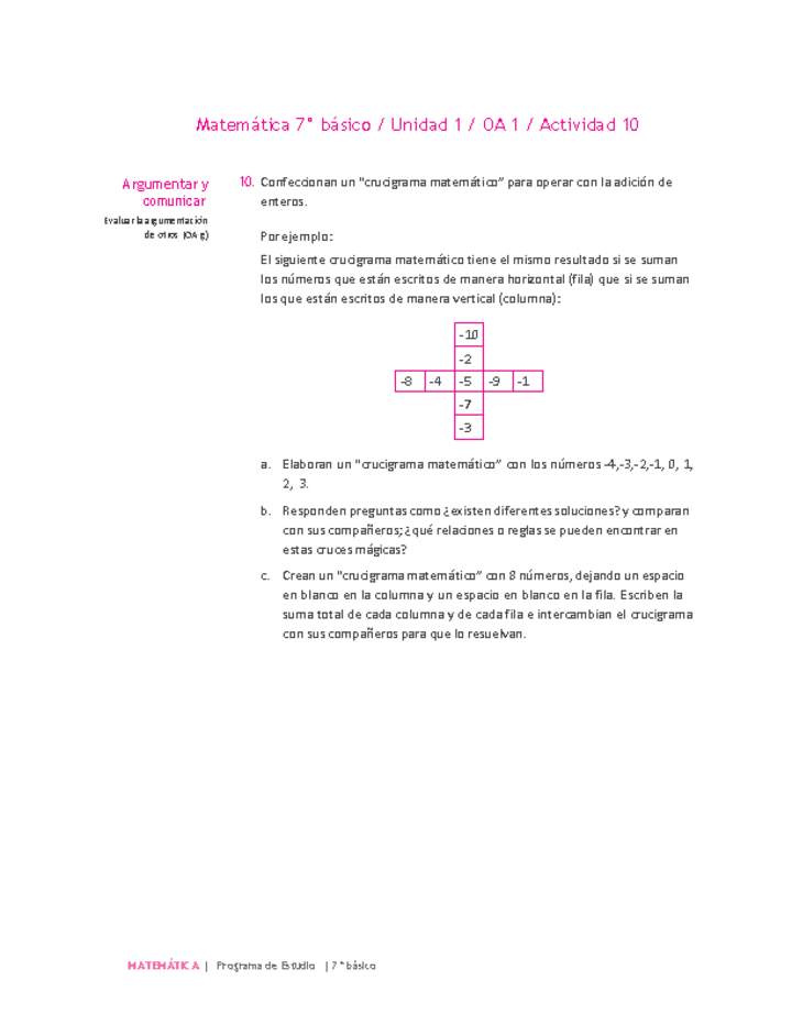 Matemática 7° básico -Unidad 1-OA 1-Actividad 10