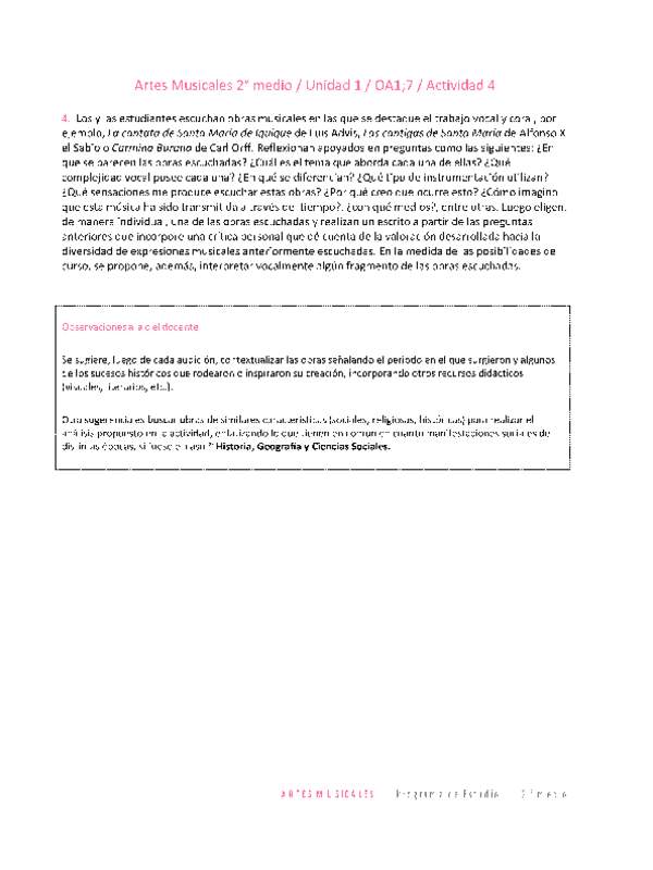 Valorar críticamente manifestaciones y obras musicales de Chile y el mundo presentes en la tradición oral, escrita y popular, comunicando sus fundamentos mediante medios verbales, visuales, sonoros y corporales.