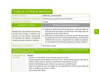 OA 6. Confeccionar artículos textiles y de vestuario de acuerdo con la secuencia de operaciones definidas en la ficha técnica y los insumos requeridos, utilizando la maquinaria apropiada, controlando la calidad y la seguridad durante el proceso.