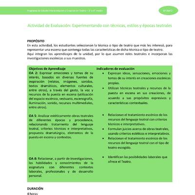 Expresar emociones y temas de su interés, basados en diversas fuentes de inspiración (relatos, imágenes, sonidos, textos dramáticos, elementos culturales, entre otros), a través del gesto, la voz y recursos de la puesta en escena (utilización del espacio escénico, vestuario, escenografía, iluminación, sonido y recursos multimediales, entre otros).