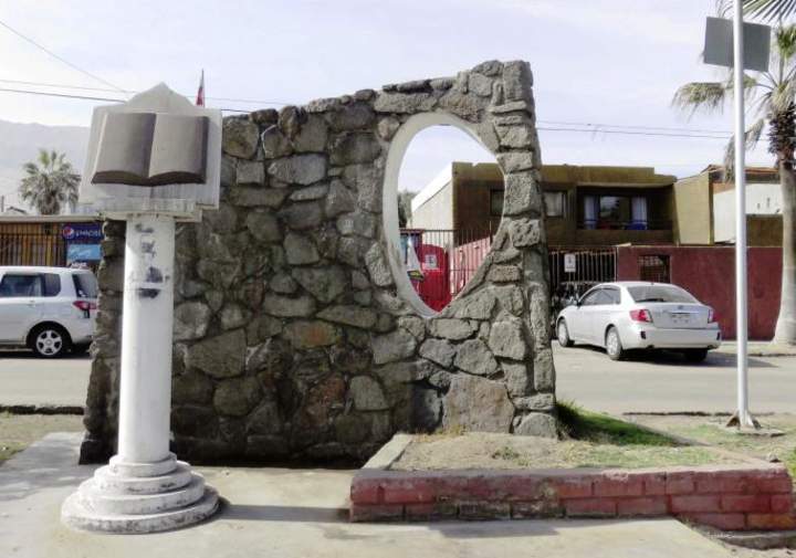 Este monumento está ubicado en el bandejón entre la calle Aeropuerto y la avenida Luis Emilio Recabarren, a la altura de la intersección con las calles Anker Nielsen y Benigno Posadas. El conjunto consta de dos figuras principales: un muro de piedras y concreto que tiene una cavidad irregular hacia su lado derecho, y la escultura de un libro abierto y sin escritura, sobre un plinto cónico de concreto, con una base escalonada. Tanto el plinto y la base, como la cavidad del muro están pintadas de blanco, mientras que el libro es de color café oscuro; las piedras son de color natural. Todo el conjunto se encuentra sobre una base de concreto, ladrillo y pasto. No posee placa ni se dispone información sobre el objeto de conmemoración de este monumento.